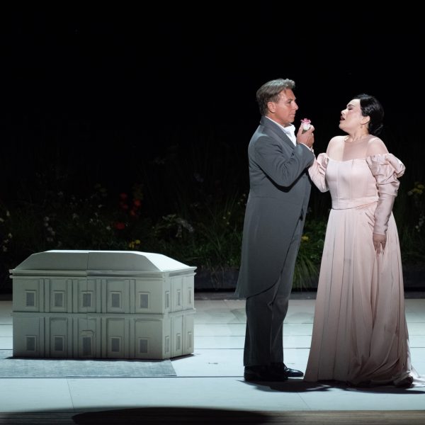 Il y a là un récitatif continu qui devient monotone, et une prosodie prisonnière des intentions très appuyées du livret. L’interlude instrumental, au milieu de l’œuvre, qui réunit les amants et deux danseurs figurant leurs doubles, paraît d’une durée disproportionnée, malgré tout le soin qu’apporte Franck Ollu à ménager les plans sonores, à doser les effets, à faire sonner l’Orchestre de l’Opéra de Lyon avec clarté.