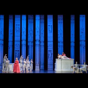 Les dimensions intimes de la Salle Garnier rétablissent un équilibre bienvenu entre des voix, dont les projections avaient paru, à Paris, diversement limitées, au détriment de l’unité du plateau. D’autant que les principaux rôles masculins sont tenus par des contre-ténors.