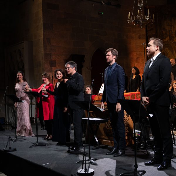 Les sopranos Ana Quintans et Montserrat Seró s’imposent chacune à leur manière : la première par une ligne d’une pureté exemplaire, alliant précision stylistique et sens aigu de la déclamation, la seconde par un beau timbre dense, presque charnel. À leurs côtés, la mezzo-soprano Maite Beaumont assure un contrepoint sonore équilibré quoiqu’un peu distant, tandis que la basse Nicolas Brooymans et le baryton Josep-Ramon Olivé défendent leur partie avec sérieux, sans dépasser une certaine uniformité d’expression. Le chœur, d’une belle cohésion, tour à tour foule pressante et regard angélique, éclaire les points de bascule jusqu’au finale, d’une intensité touchante.