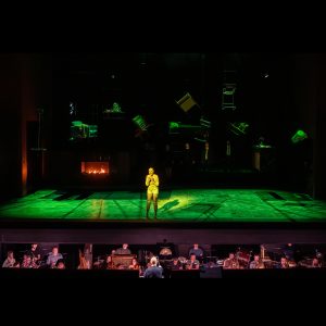 Présenter Der Freischütz en version de concert, sans les dialogues parlés essentiels au Singspiel, est un défi. Dans le texte de liaison proposé ici, dû à l’écrivain allemand Steffen Kopetzky, c’est Samiel (le Chasseur noir, alias le Diable) qui parle. Ce texte bavard et à prétentions philosophiques, n’éclairant pas l’action, plombe un peu la soirée, lu avec micro par la comédienne Johanna Wokalek, d’un ton bourgeois et avec de notables limites phonatoires dans la traduction française donnée en cette unique étape non allemande de la tournée. Et que ne revient-elle à l’allemand original pour la scène de la Gorge aux loups, assez risible en version bilingue !