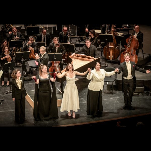 Marc Leroy-Calatayud, déjà remarqué ici pour Werther, est de ces chefs qui savent faire, tenir, et aller jusqu’au bout du monumental sans perdre en subtilité. L’effectif forcément réduit de son Orchestre de Chambre de Lausanne est compensé par l’expressivité de ses pupitres et sa parfaite homogénéité, grâce à quoi on oublie certaines vacuités de l’orchestration – pas toujours du meilleur Meyerbeer – et quelques décalages avec les voix. L’Ensemble Vocal de Lausanne et la Haute École de Musique de Genève-Neuchâtel impressionnent ; comme ravissent les délicieuses interventions de la Nouvelle Maîtrise des Hauts-de-Seine au couronnement. Bilan très positif, qui pousse à espérer le retour de l’œuvre en son berceau avec une proposition scénique ébouriffante, comme il se devrait.