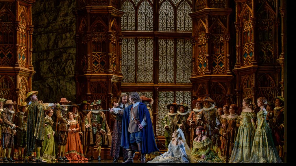 Prise de rôle aussi, après ses succès in loco en Tamino et Lenski, pour Bror Magnus Tødenes, Edgardo juvénile et attachant, mais fragile et à la projection irrégulière. La voix disparaît dans l’attaque du sextuor « Chi mi frena », et la scène finale, si tendue, est assumée non sans effort, avec un aigu tour à tour éclatant ou plus incertain. Germán Enrique Alcántara est un Enrico solide, sans excès de subtilité, et Alessio Cacciamani un impressionnant Raimondo, malgré un certain engorgement. On apprécie la pertinence des seconds rôles, entre une sonore Alisa (Irina Sherazadishvili), un Normanno plein d’aplomb (Fabien Hyon) et un valeureux Arturo (Valentin Thill).