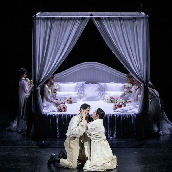 Bien moins souvent donnée à la scène que celle de Massenet (1884), la Manon de Puccini (1893) aligne les qualités habituelles du compositeur lucquois : raffinement orchestral et mélodique, emportements passionnés. Le récit, assure fort justement Emma Dante dans son argument initial, raconte un monde de précarité, d’exploitation de la femme et de male gaze – regard des hommes sur les femmes. C’est peu dire que ce propos ne parvient pas à soutenir une mise en scène déséquilibrée et bien peu convaincante, échouant à tirer parti du livret, complexe il est vrai par ses écarts et ellipses.